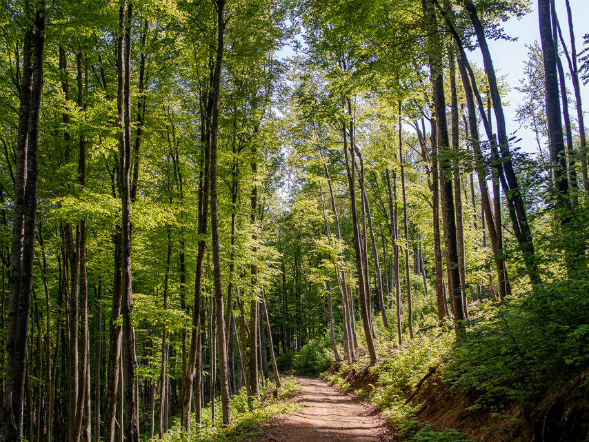 Numerous trails wind through lush forests, cascading waterfalls, and striking limestone formations. Peak Izoiu (1,098 m) is a lesser-known yet stunning hiking destination, offering panoramic views of the surrounding landscapes. The trail is challenging due to its elevation gain of 920 meters.